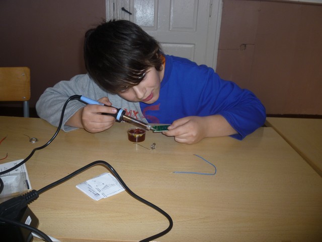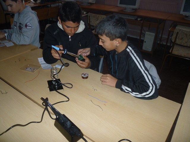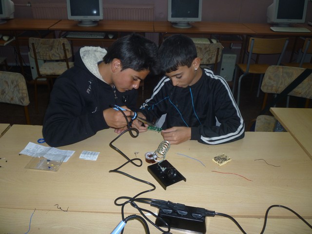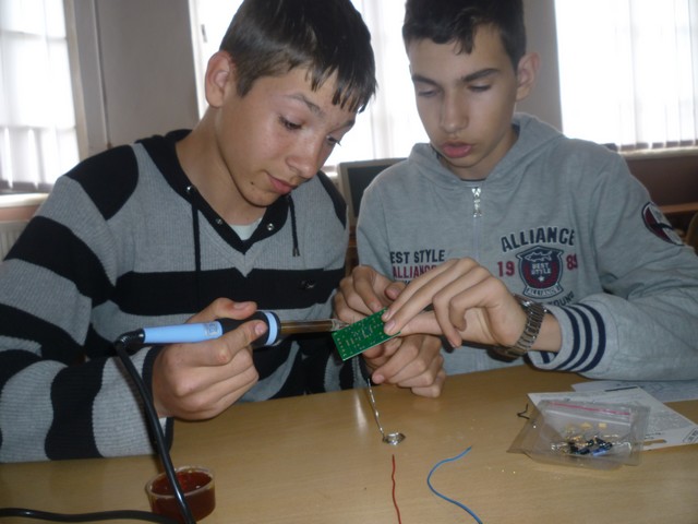 УЧЕНИЦИТЕ С ИНТЕРЕС РАБОТЯТ С ПОЯЛНИК ЕЛЕКТРОННА СХЕМА ЗА СГЛОБЯВАНЕ НА ,,ДВУТОНАЛНА СИРЕНА".